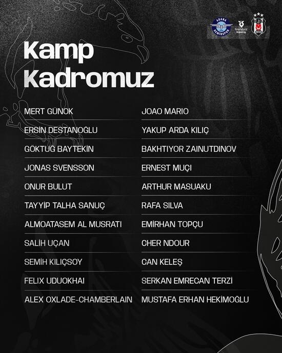 Siyah-beyazlılarda kart cezalısı Gedson Fernandes ile birlikte Jean Onana da Adana Demirspor maçı takımında yer almıyor.
