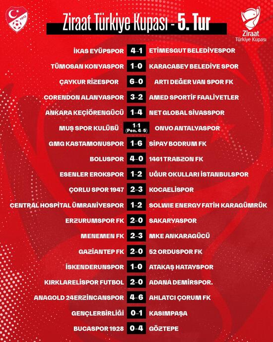 Ziraat Türkiye Kupası’nda 5. tıp maçlarının sonuçları ve cins atlayan gruplar şu halde: