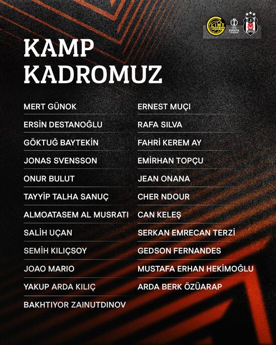 İŞTE BEŞİKTAŞ’IN KAMP TAKIMI;